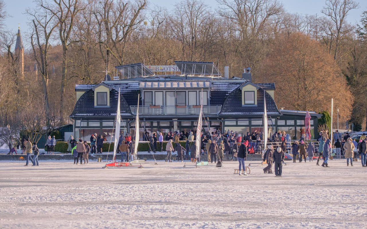 Meine Korrespondenten laufen 2026 offenbar zur Höchstform auf. Eben haben mich von Christian Ehlert Luftaufnahmen vom fröhlichen Eis-Treiben auf dem Zierker See in Neustrelitz erreicht, da schließt sich auch schon Hans-Joachim Wloczyk mit zwei Motiven aus dem Erdgeschoss an.